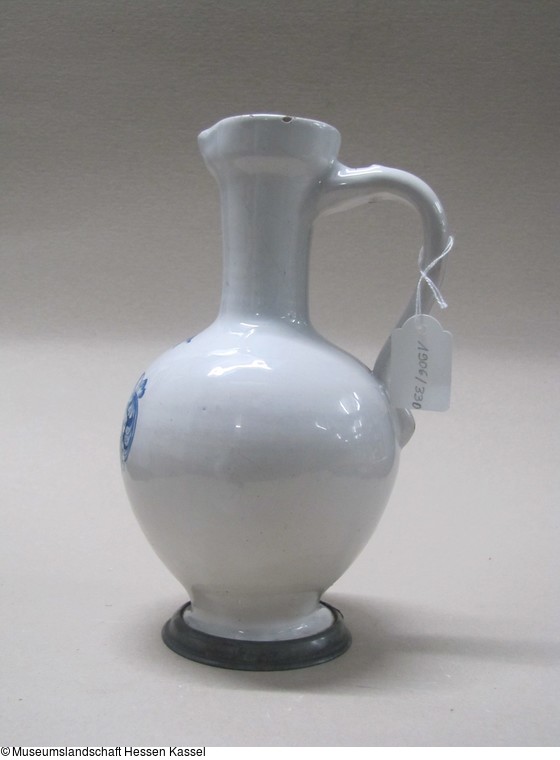 Fayence, glasiert und bemalt (Inglasur), Zinnmontierung |