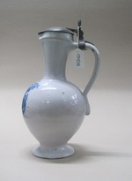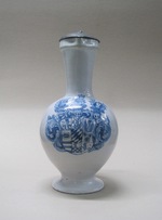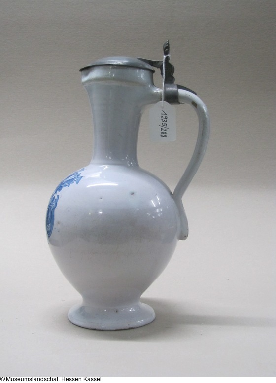 Fayence, glasiert und bemalt (Inglasur), Zinnmontierung |