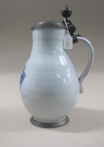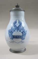 Birnförmiger Krug mit Wappen von Papius unter geflügeltem Helm, Zinnmontierung
