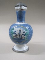 Fayence, glasiert und bemalt (Inglasur), Zinnmontierung |