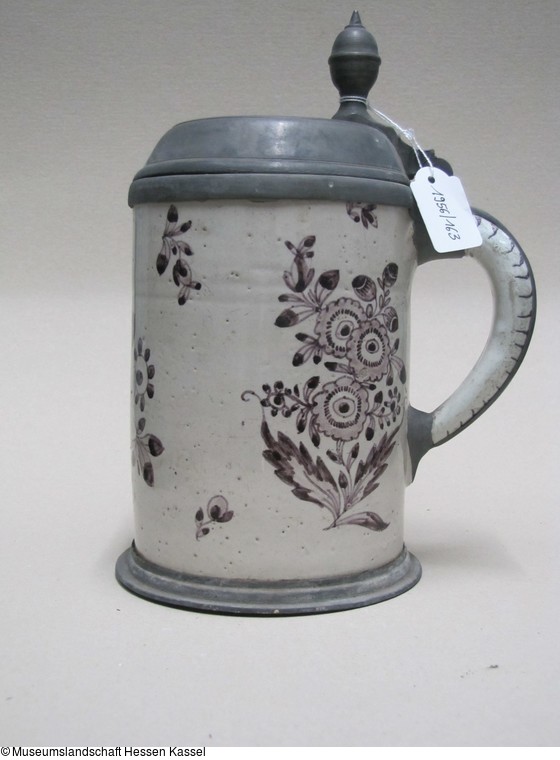 Fayence, glasiert und bemalt (Inglasur), Zinnmontierung |