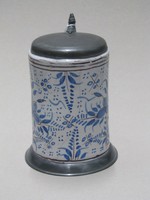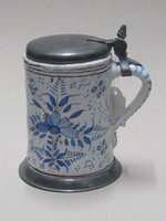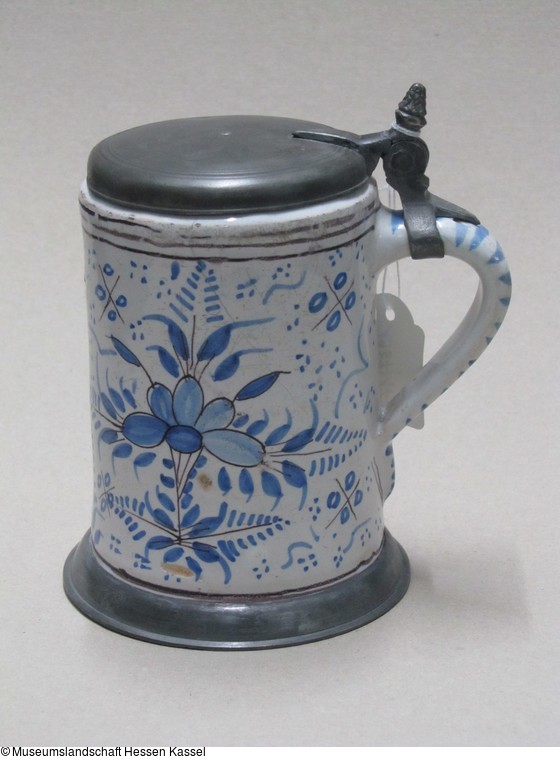 Fayence, glasiert und bemalt (Inglasur), Zinnmontierung |
