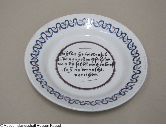 Spruchteller "Zähl die Zufriedenheit zu deinen ersten Pflichten Was du selbst machen kanst laß andere nicht verrichten" |