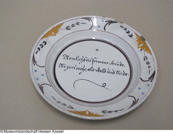 Spruchteller "Reinlichkeit sei meine Freude, sie ziert mehr, als Gold und Seide"