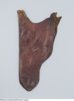 Leder (eventuell Ziege), Oberfläche verm. mit rötlichem Lack überzogen |