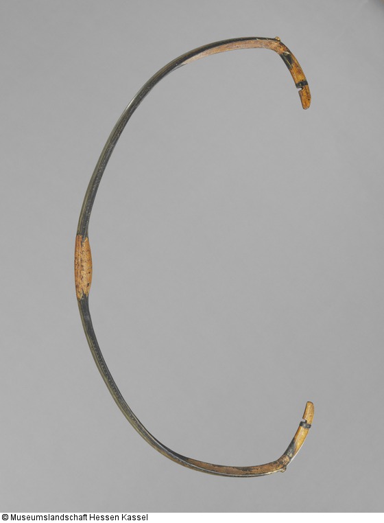 Dieses Stück ist der am stärksten gekrümmte Bogen der Sammlung. Wir deuteten dies als Hinweis auf das Entfernen der Sehne zu einem sehr frühen Zeitpunkt und sahen in dem Bogen ein Beispiel für die ursprüngliche Bogen-Krümmung. Leser dieses Katalogeintrags stellten aber klar, dass es sich um einen sogenannten "Flight-Bogen" handle, der nicht für den Kriegsgebrauch, sondern zum Sportschießen verwendet wurde. Solche Bogentypen besitzen grundsätzlich eine andere Krümmung (siehe die Nutzerkommentare unten, für die wir uns herzlich bedanken). (15.10.12 MZ; 21.04.21 AS)