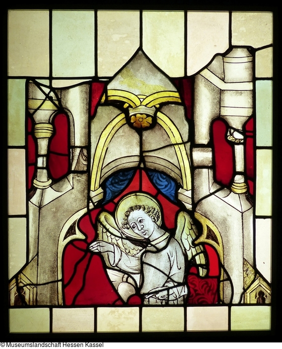 Die beiden Fenster aus Dagobertshausen (Malsfeld) wurden vermutlich für das Museum Fridericianum erworben. Petrus mit Spruchband (KP 1908/457,1) dürfte einst einen Zyklus mit den zwölf Aposteln eingeleitet haben, während der Engel (KP 1908/457,4) den obersten Abschluss einer Geburts- oder Anbetungsszene gebildet haben könnte.