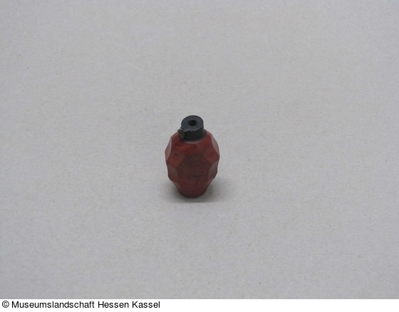 Rotes Lithyalinglas, Schäl- und Flachschliff. Hals und Mündung silbergefaßt, Stöpsel fehlt. |
