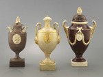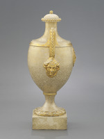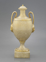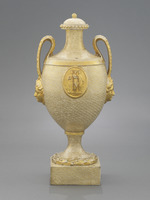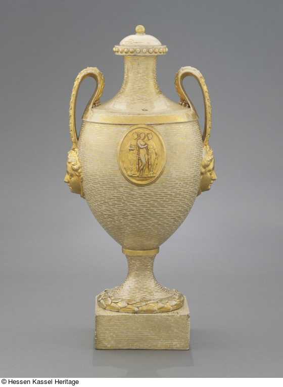 Deckelvase mit Maskarons und Reliefmedaillon mit drei Frauen