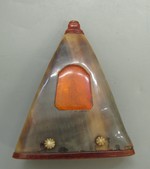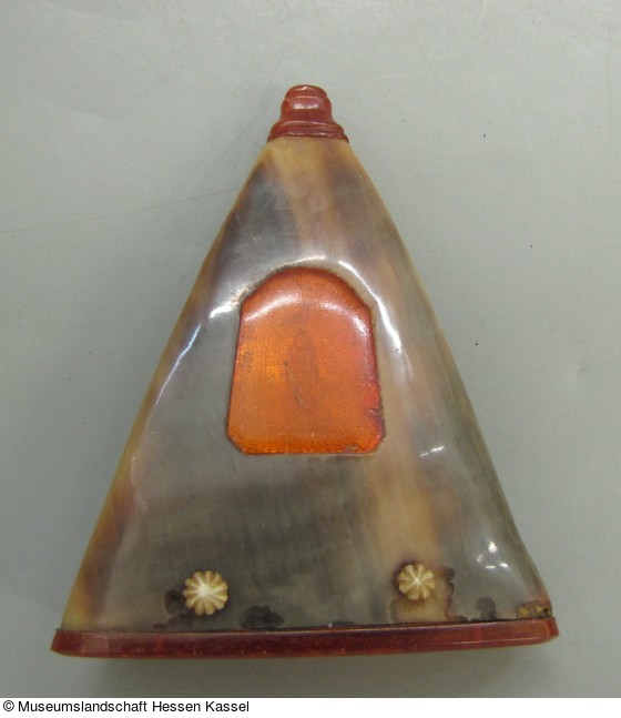Horn, Bernstein, Knochen, Gold (Folie), Messing |