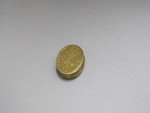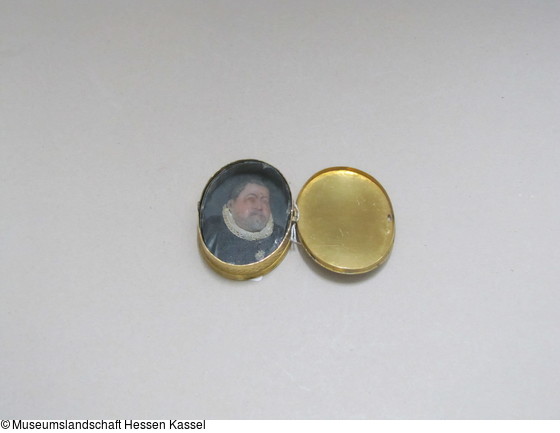 Kupferlegierung (Messing?) vergoldet, Glas, Wachs