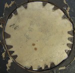 Holz, Innenring gedrechselt, schwarz gefasst, Kupger gedrückt und vergoldet, Pergament; Gouache, Papier, Messing (Öse), Stahl (Schrauben) |