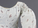 Baumwollkleid mit langen Ärmeln u. Manschette; mit lila und rosa Blüten.
