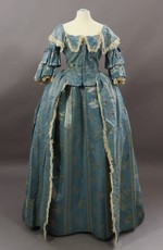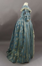 Da es sich um eine Überweisung aus dem Hoftheater handelt, wurde das Kleid stark verändert. Der Rock wurde enger gemacht und der eingesparte Stoff für massive Veränderungen des Oberteils verwendet: Der runde Miederausschnitt wurde mit einem Schulterkragen eingefasst und gerafft, im Rücken ein Keil eingesetzt. Die halblangen Ärmel wurden mit je einem zusätzlichen Volant verziert und in der Armbeuge Schleifenbündel aus Seidenband aufgesetzt. Außerdem wurden hier neue Spitzen angesetzt.
