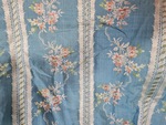 Robe à l'anglais aus blauer Seide mit weißen Bändern und Blütensträußen