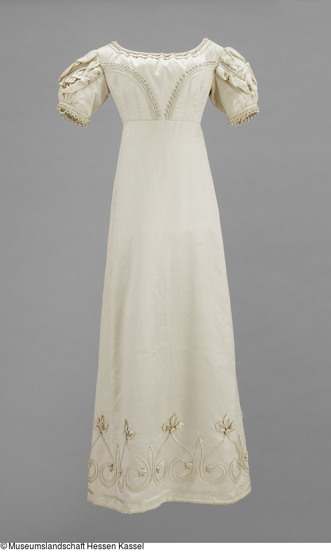 Bezeichnung: Brautkleid, crèmefarbene Seide, von Ernestine Wiß