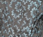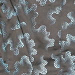 Gefüttert ist die Jacke mit einem weißen Baumwollgewebe, dass mit Wellen aus silbernen, kurzen Strichen bedruckt ist.