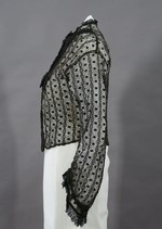 Kragenlose Bluse mit 3/4Ärmeln aus ehemals schwarzer, jetzt ins Braune verblichener Spitze.