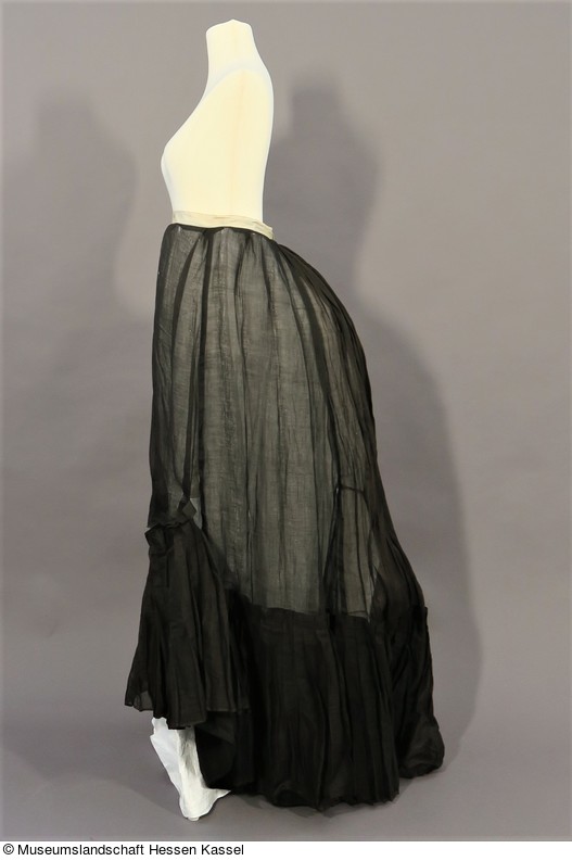 Tournürenrock aus dunkelbraunem, sehr steif gestärktem Batist.