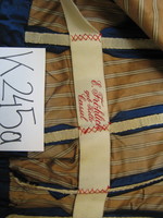 Das Futter besteht aus einem Baumwollköper, der mit einem braun-weißen Streifenmuster bedruckt ist. Die Seiten- und alle Teilungsnähte sind mit Fischbein versteift, das mit weißem Seidentaft abgedeckt ist.