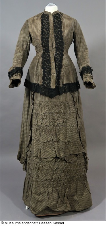 braunes Besuchskleid aus Tournürennrock und Jacke