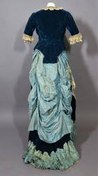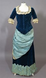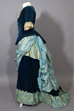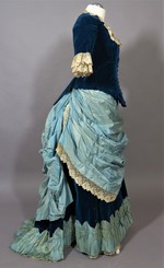 blaues Gesellschaftskleid mit Tournüre und Schleppe |