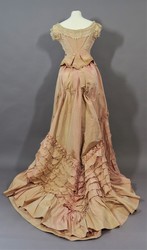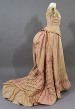 Ballkleid mit Tournüre und Schleppe aus rosa Seidenrips |