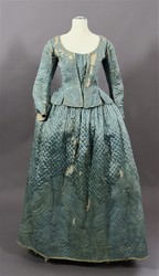 Entsprechend handelt es sich bei diesem dreiteiligen Anzug um ein Morgenkleid, das aus Rock, Mieder und Stecker besteht.