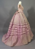 Die Krinoline für diesen Rock hatte die größte Ausdehnung im Rücken, so dass die längere Rückenpartie für diese Wölbung und nicht für eine Schleppe benötigt wurde.