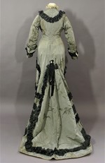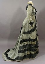 graues Damenkleid in Prinzessform mit Tournüre und Schleppe |