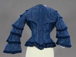 Der Schoß der Jacke ist sehr stark ausgestellt und so weit geschnitten, dass er glatt über dem, durch mehrere, z.T. versteifte Unterröcke unterstützten, kuppelförmigen Rock liegt.