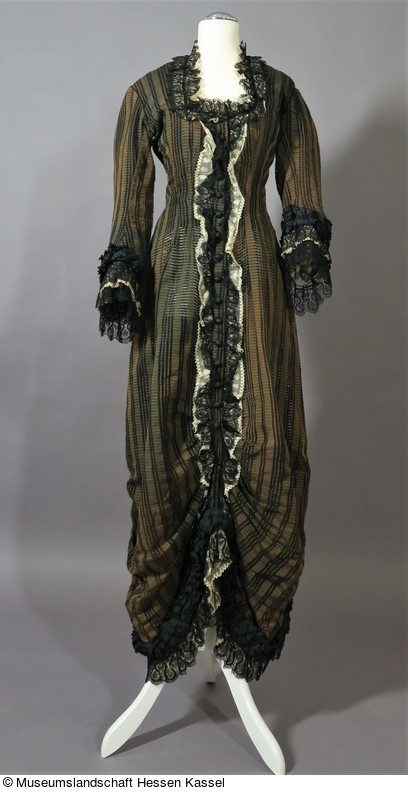 schwarzbraunes Überkleid eines Tournürenkostüms