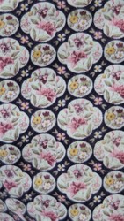 2-teiliges Sommerkleid aus mit einem Blütendekor bedrucktem Baumwollbatist und dunkelblauen Samtbesätzen.