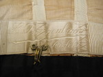 Vorder- und Rückenteile sind mit weißem Leinen gefüttert und alle senkrechten Nähte mit Fischbeinstäben versteift. Die Brustpartie ist etwas wattiert. Die Ärmel haben ein Futter aus schwarzem Seidentaft.