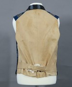 Der Rücken, das Futter und der untere Kragenbeleg sind aus feiner, beigefarbener (vermutlich ursprgl. heller) Baumwolle. Kragen, Saum- und Taschenkanten sind mit einer schwarzen Kordel eingefasst und im Rücken sind zwei Riegel und eine Schnalle angenäht, um die Taillenweite regulieren zu können.