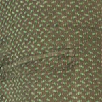 Kurze Herrenweste aus einem dunkelbraunem Atlas mit Liseré-Muster aus Reihen mit grünen Rauten und rosa Linien im Wechsel.