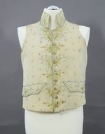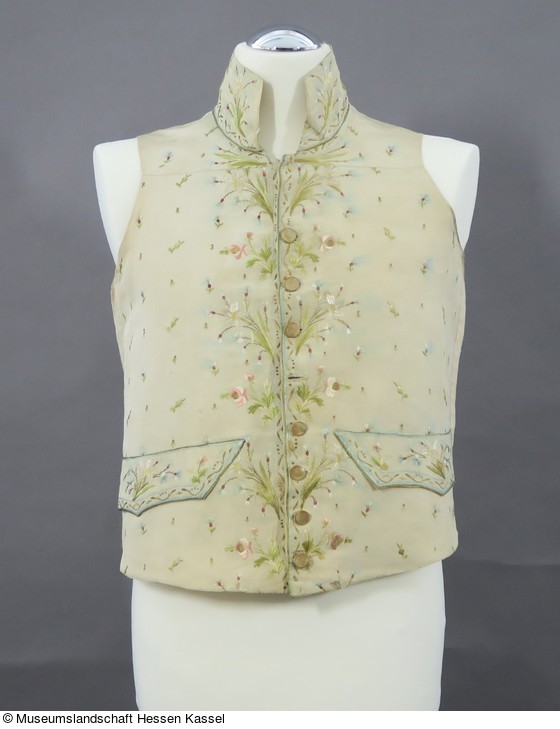 Ursprünglich handelt es sich um eine Weste aus der Zeit um 1770, deren Vorderteile vermutlich als bestickte Stoffbahn in Frankreich hergestellt und von einem einheimischen Schneider zur Weste komplettiert wurden.