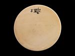 Elfenbein, gedrechselt, geschnitzt, geschabt und poliert. Auf der Rückseite Zentrierpunkt und Drechselspuren. Unterhalb der Umschrift Blindriss. |