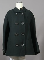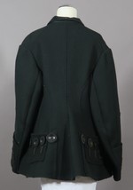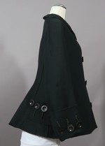 Beide werden mit den gleichen, großen Holzknöpfen geschlossen und haben einen identischen Reverskragen. Der hintere Rockschoß ist weit ausgestellt, damit die Jacken über einer Tournüre getragen werden können und die Manschetten sind weit aufgeschlagen und ebenfalls mit den großen Holzknöpfen besetzt.