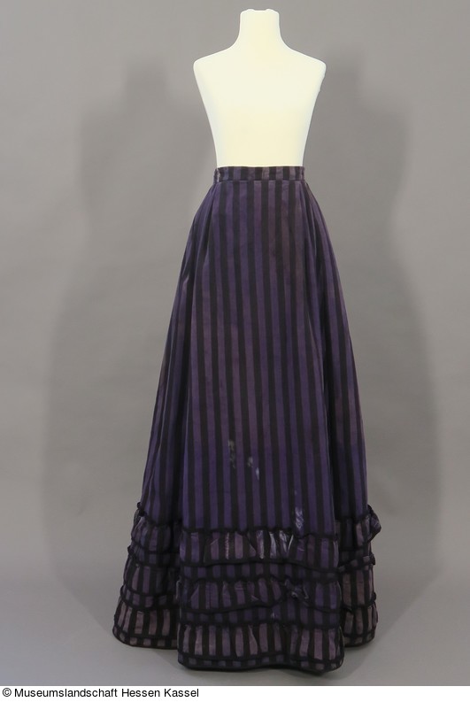 Schlichter Tournürenrock aus lila und schwarz getreiftem Leinen.