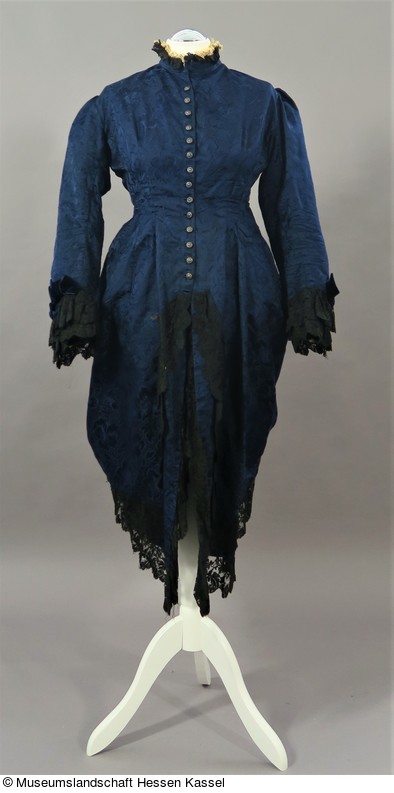 blaueTournürenjacke eines 2-teiligen Damenkleides |