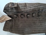 Der Verschluss der Hosenbeine am Knie besteht aus jeweils 5 bezogenen Knöpfen und einem geknöpften Riegel.