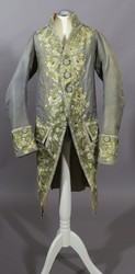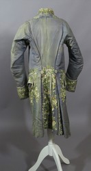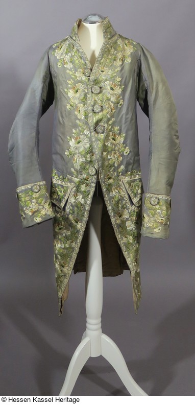 Da dieses Stück eine Überweisung aus dem Hoftheater ist, wurde es sehr stark verändert, so dass die eigentliche Form, nämlich die schmale Form der Jacke mit den weit zurückschwingenden Vorderteilen und der hohe Stehkragen, die Indizien dafür sind, dass der Anzug im letzten Drittel des 18. Jahrhunderts entstanden ist, kaum noch zu erkennen sind.