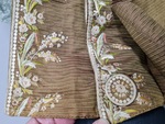 Da es sich bei diesem Stück um eine Überweisung aus dem Hoftheater handelt, sind massive Veränderung vorgenommen worden. Wahrscheinlich wurde die Jacke in der Taille gekürzt, auf jeden Fall aber komplett neu gefüttert. Dafür verwendete man einen weißen Baumwollsatin und für die Ärmel Flanell. Eventuell wurden auch bei den Gehfalten Veränderungen vorgenommen.