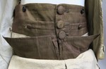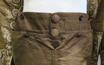 Die Hosenbeine wurden im Bereich der Oberschenkel ausgelassen und die Kniebänder mit Druckknöpfen versehen. Am Hosenbund wurden Knöpfe für Hosenträger angenäht und die rückwärtige Mittelnaht zur Hälfte aufgetrennt.