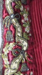 Justeaucorps aus weinrotem, geripptem Samt mit Metallstickerei