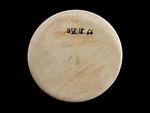 Elfenbein, gedrechselt, geschnitzt, geschabt und poliert. Blindriss unter der Umschrift. Reliefgrund zur Medaillonmitte hin konkav einsinkend. Rückseite Schleif- und Schabspuren, teilweise ungleichmäßig verzogen, schwankende Dicke am Rand. |