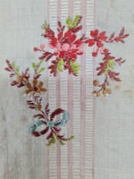 Das Mieder ist auf ein festes Leinen gearbeitet, hat im Rücken Schnürleisten mit Metallösen und ist vorne mit Fischbein versteift.