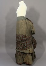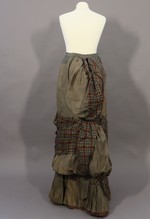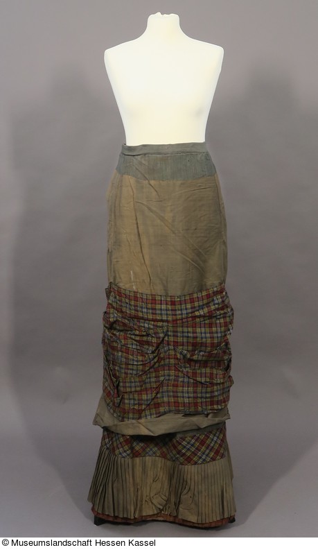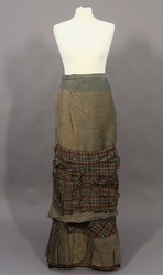 graubeiger Tournürenrock mit schottisch karierter Garnierung
