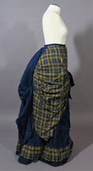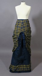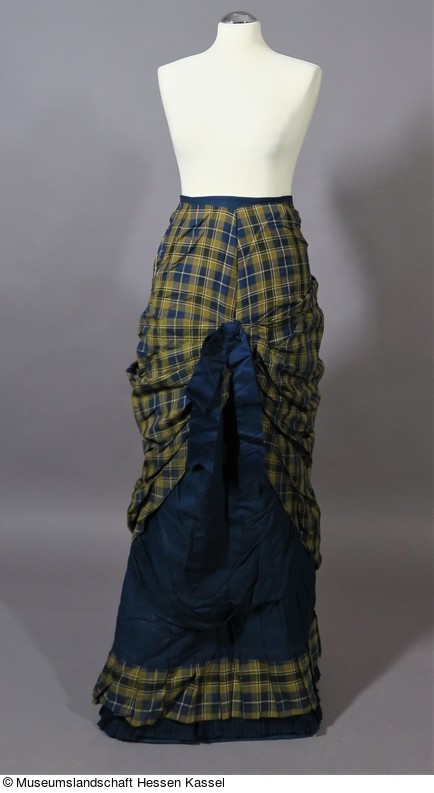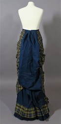 schottisch karierter Rock eines 2-teiligen Tournürenkostüms in Blau und Gelb